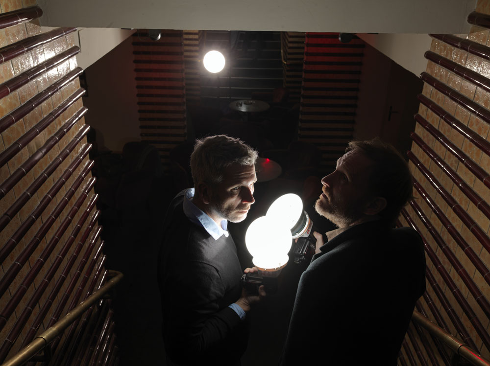 foto: dirk stermann & christoph grissemann, fotografiert für "first", rabenhof, wien, 2011