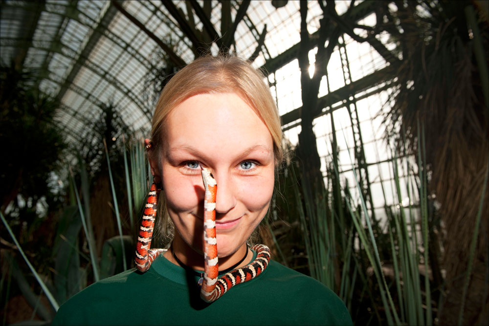 foto: mirijam gutwillinger und die bergkönigsnatter, fotografiert für das buch: "leben im zoo", echomedia, wien 2011